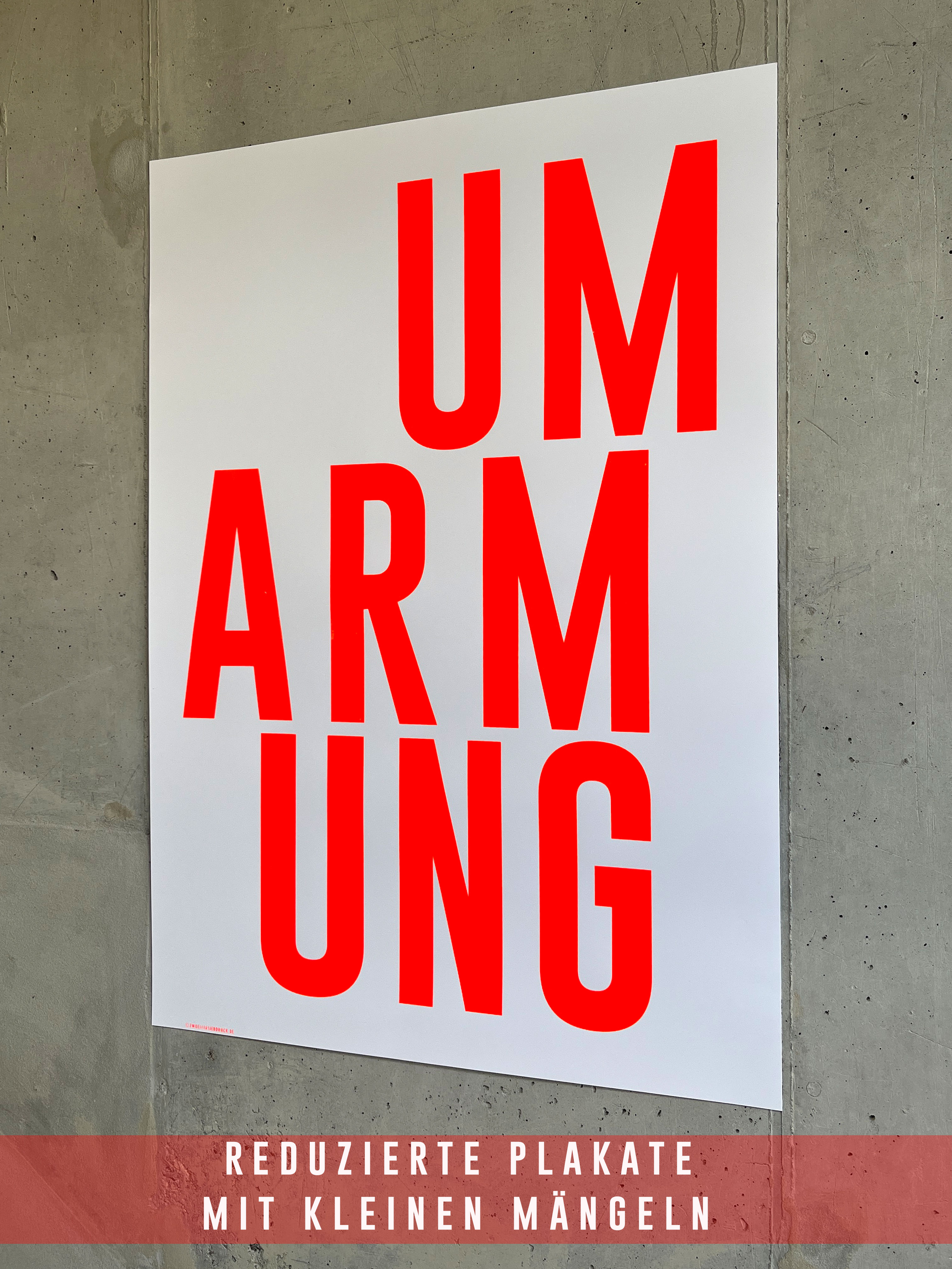 Plakat Umarmung, neonrot, 70 x 50 cm, Hahnemühlekarton 300 g mit kleinen Druckabweichungen.
